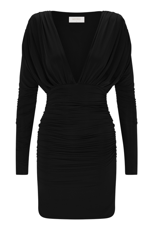 Hayden Long Sleeve Plunge Mini Dress - Black