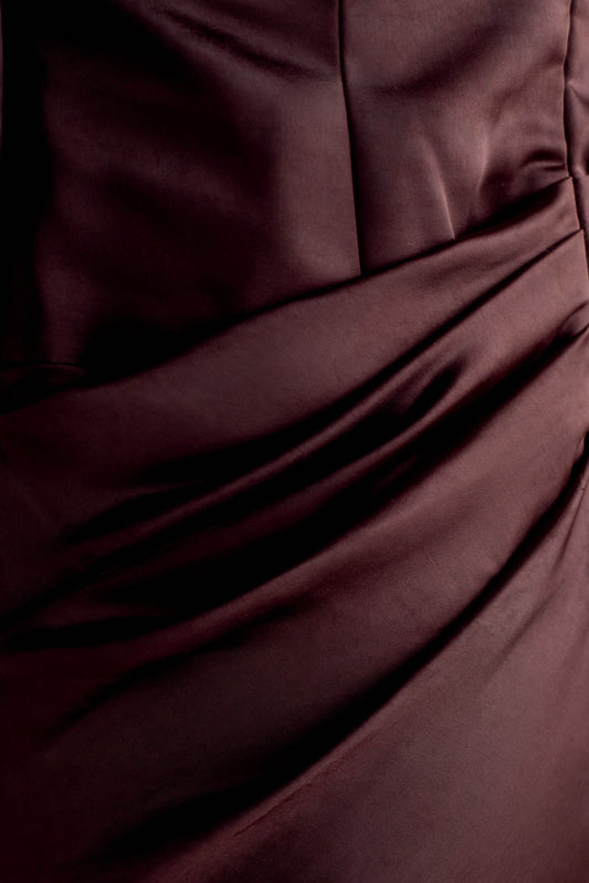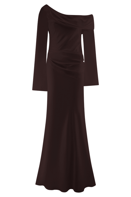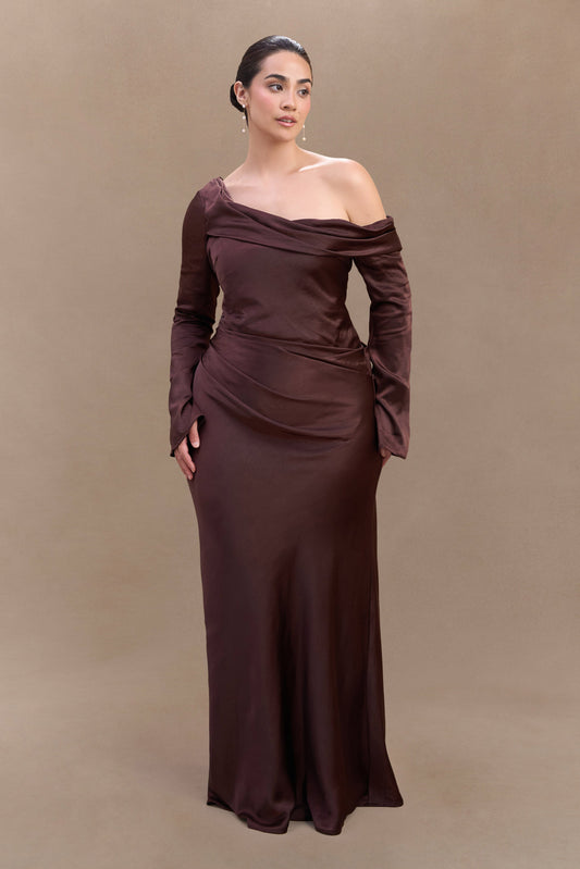 Iris Long Sleeve Satin Maxi Dress - Dark Chocolate