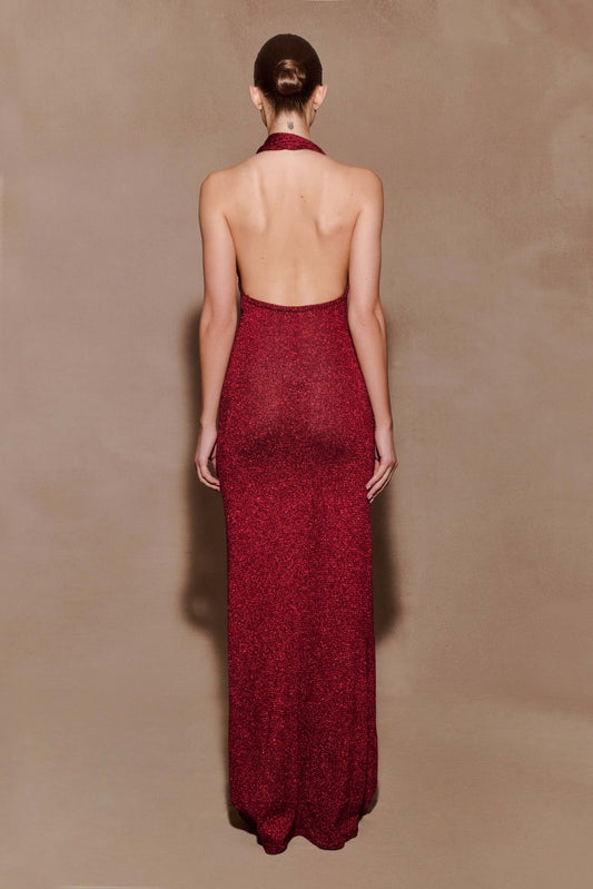 Elma Lurex Knit Halter Maxi Dress - Deep Red