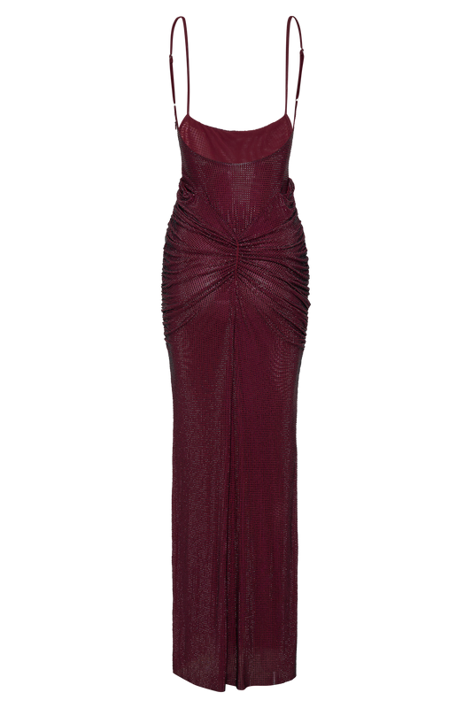 Mattea Slinky And Mesh Maxi Dress With Scarf - Burgundy