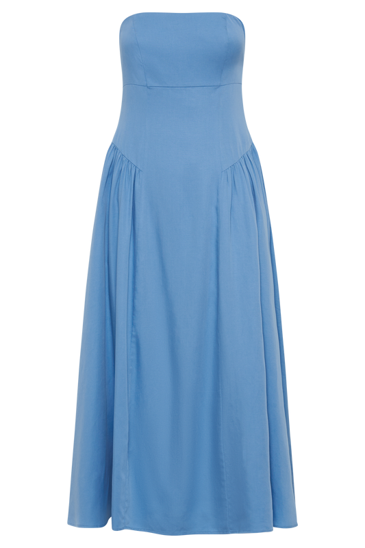 Carmele Cotton Gathered Midi Dress - Iris Blue