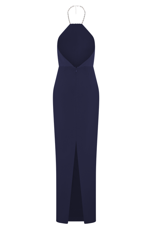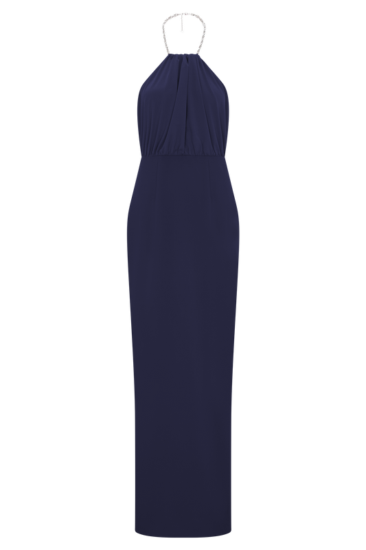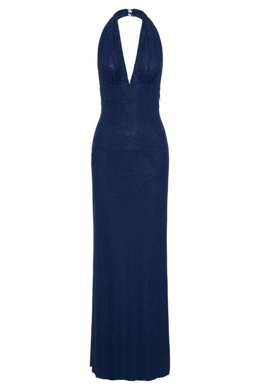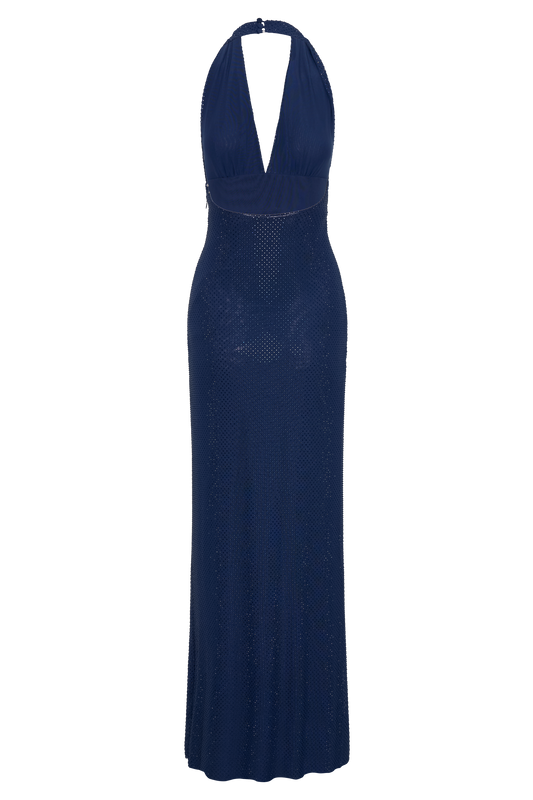 Harriet Halter Neck Diamante Maxi Dress - Navy