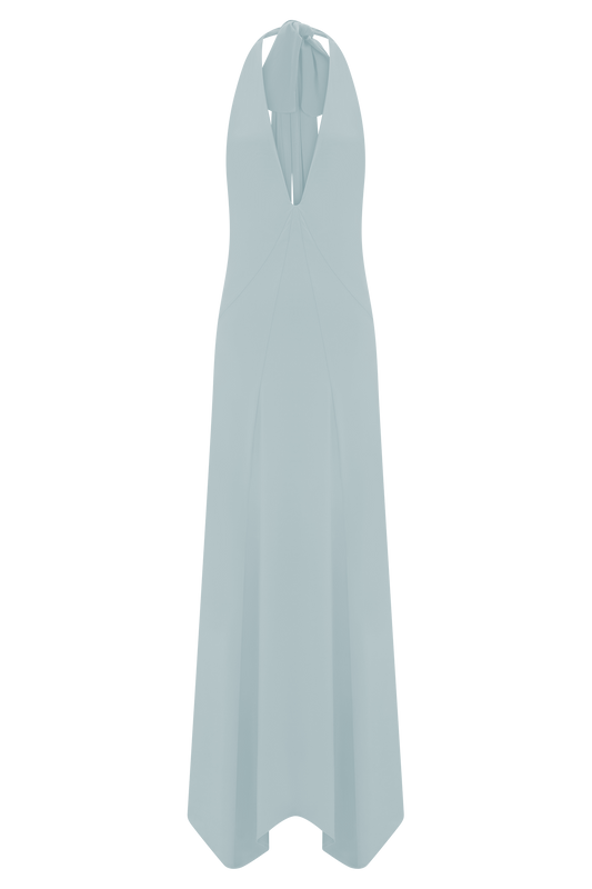 Bella Satin Halter Maxi Dress - Frosted Blue