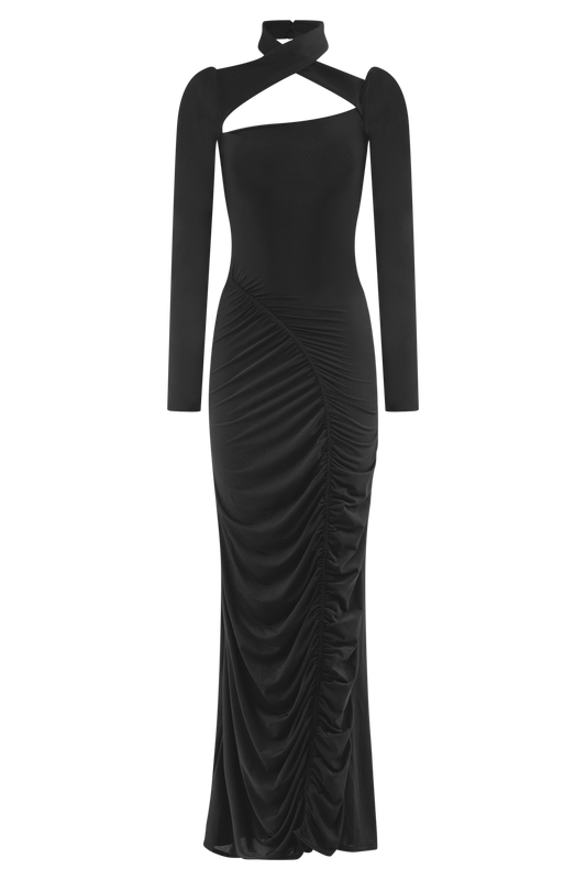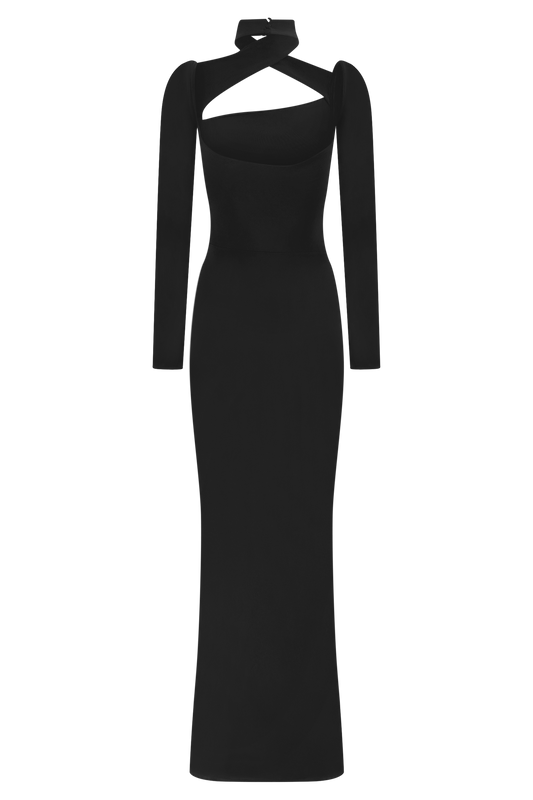 Lyndon Long Sleeve Slinky Maxi Dress - Black