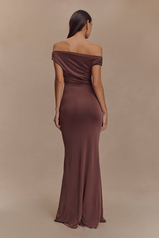 Cassandra Off Shoulder Slinky Maxi Dress - Neutral Ombre