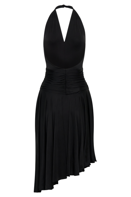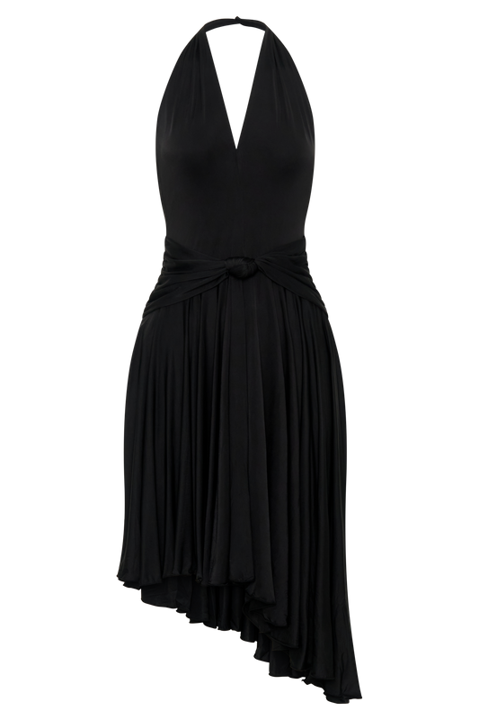 Zelda Asymmetric Slinky Midi Dress - Black