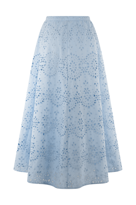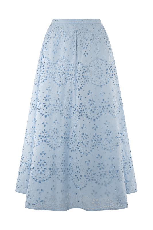 Arla Broderie Midi Skirt - Pale Cornflower Blue