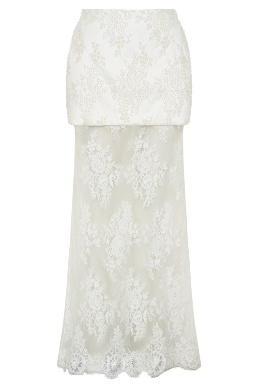 Beaded Satin And Lace Maxi Skirt - Ivory