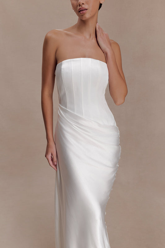 Jasmine Strapless Satin Maxi Dress - White