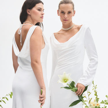 Timeless & Romantic Champagne and white bridesmaid dresses are timeless classics. You can never go wrong with long gowns and midi dresses in rich neutrals, soft creams, and elegant beige. Delicate lace details adorned with sequins and draped in satin create silhouettes worthy of a fairytale wedding. If you aspire to achieve an ethereal, romantic look, our MESHKI bridesmaid dresses collection may offer exactly what you need.