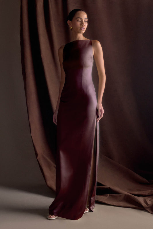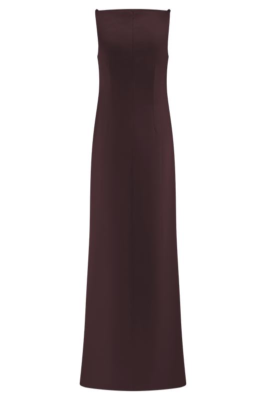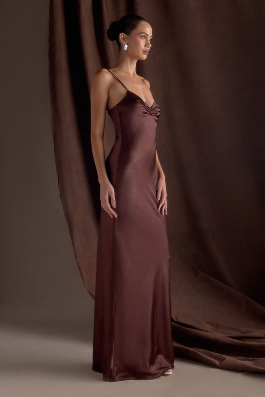Violet Sleeveless Satin Maxi Dress - Dark Chocolate