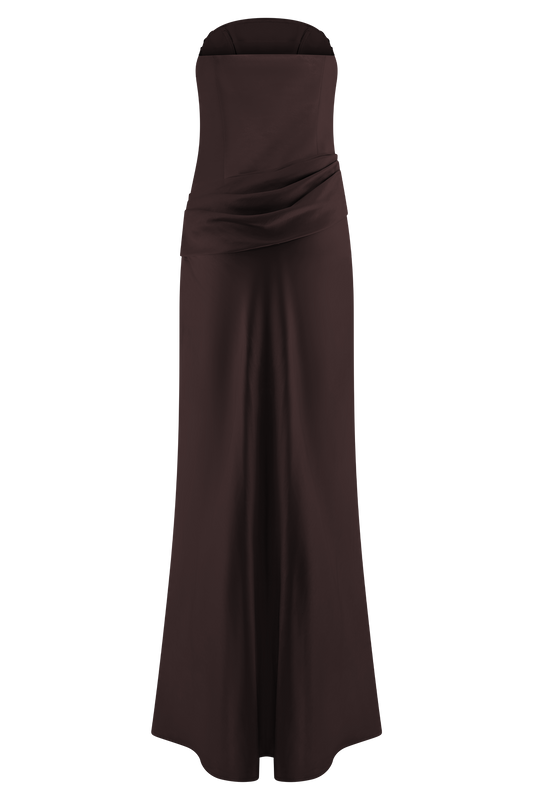 Jasmine Strapless Satin Maxi Dress - Dark Chocolate