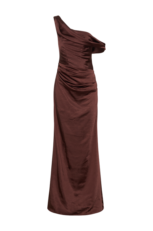 Regular price £145Unit price / per20% OFF AT CARTLorieanne Draped Maxi Dress - Dark Chocolate