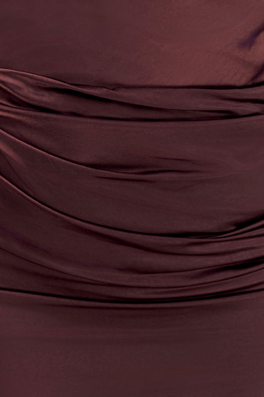 Cyra Plunge Satin Midi Dress - Dark Chocolate