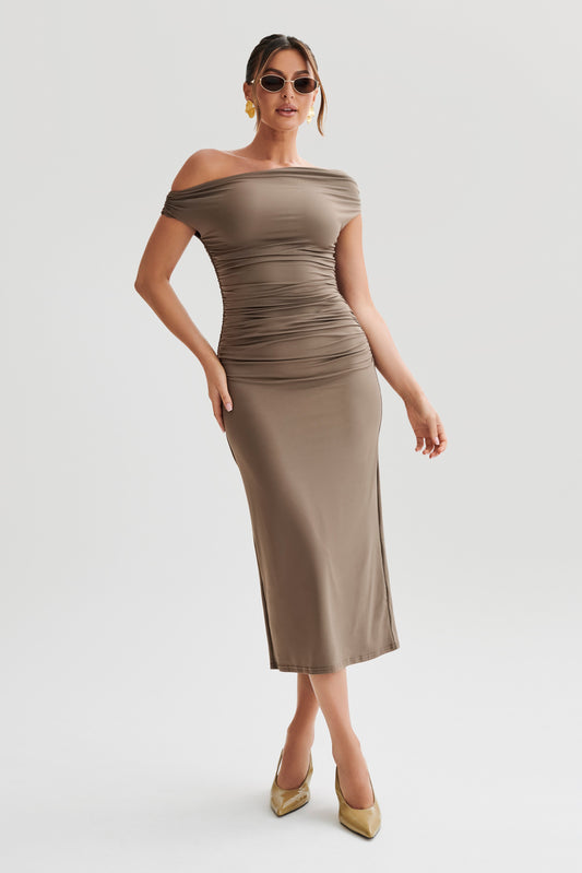 Marisol Off Shoulder Boucle Maxi Dress - Pastel Green