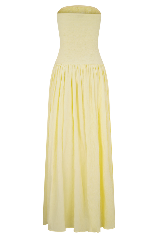 Maureen Cotton Shirring Maxi Dress - Lemon