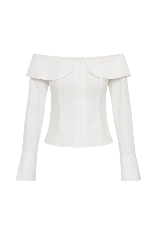 Regular price£75-60% Off Sale price £30Unit price / perSpencer Off Shoulder Shirting Top - White