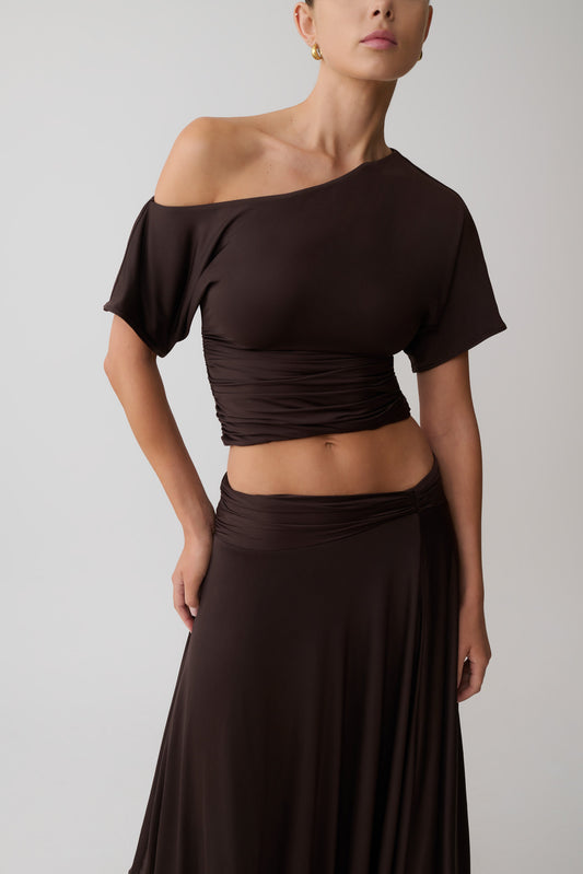 Luu Off Shoulder Slinky Top - Dark Chocolate