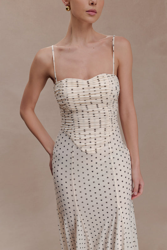 Maureen Cotton Shirring Maxi Dress - Black