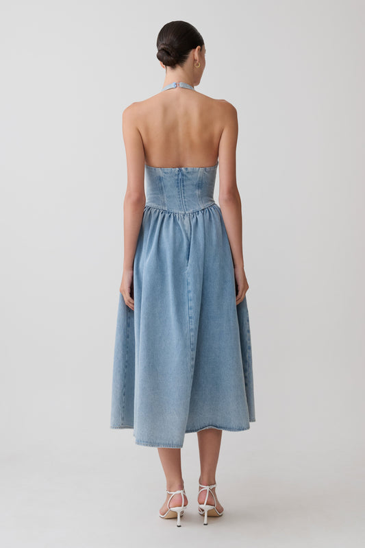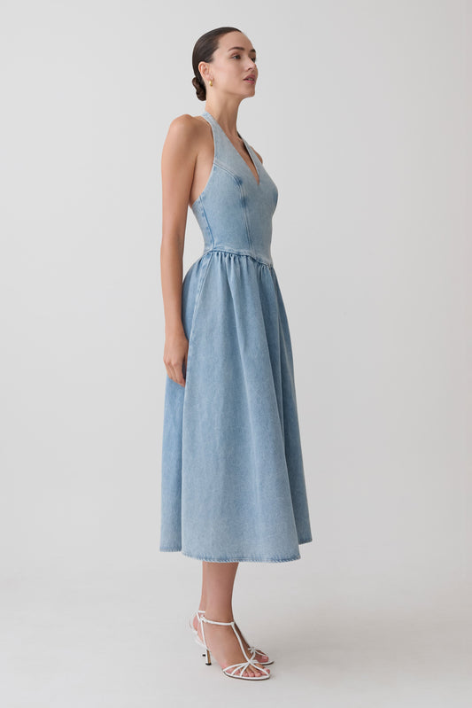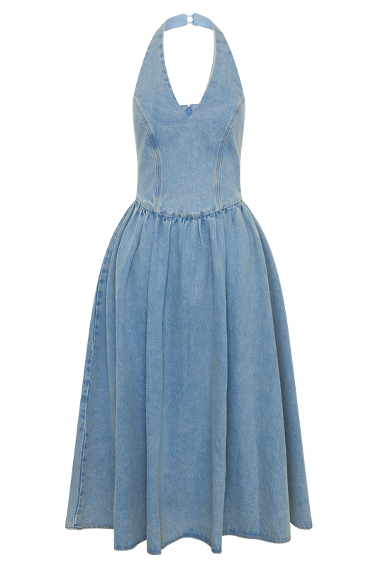 Miller Denim Halter Midi Dress - Classic Blue