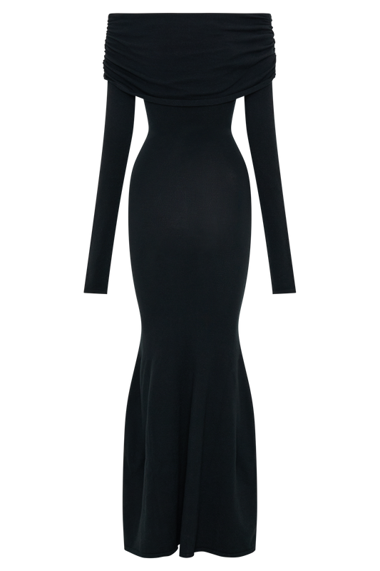 Georgiana Off Shoulder Knit Midi Dress - Black