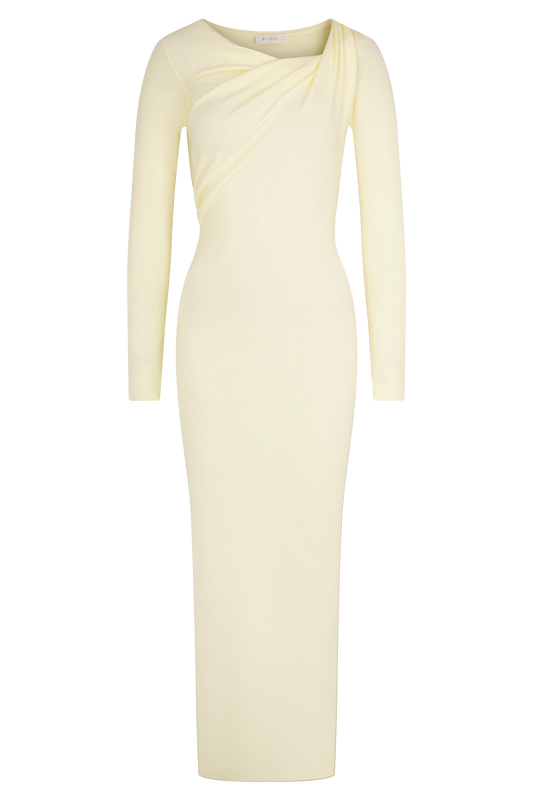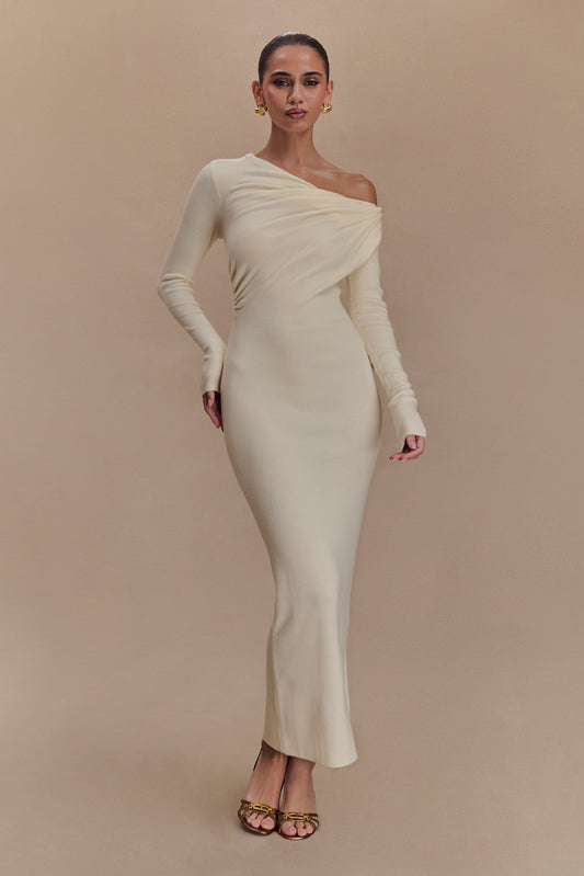 Arden Asymmetrical Rib Knit Maxi Dress - Ivory Marle