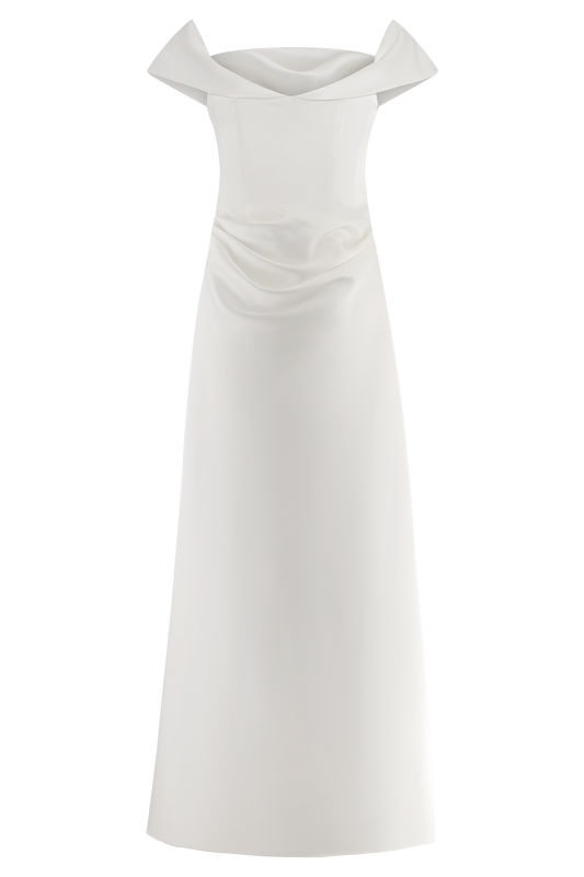 Aphrodite Off Shoulder Crepe Gown - Ivory