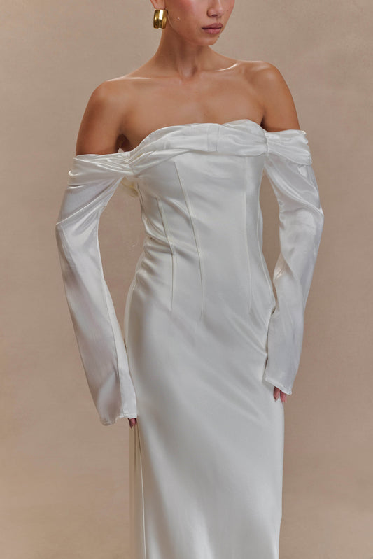 Luna Satin Off Shoulder Gown - White