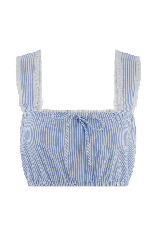 Gretel Sleeveless Crop Top - Blue Pinstripe