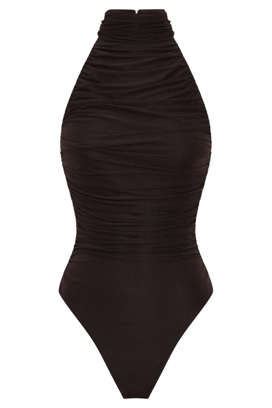 Matilda Ruched Mesh Bodysuit - Chocolate