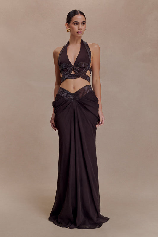 Siren Satin And Diamante Maxi Skirt - Dark Chocolate