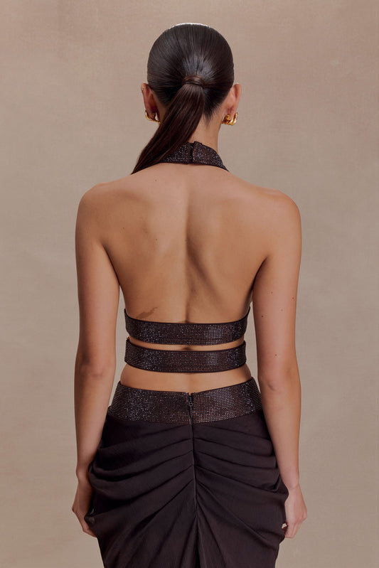 Siren Satin And Diamante Halter Top - Dark Chocolate