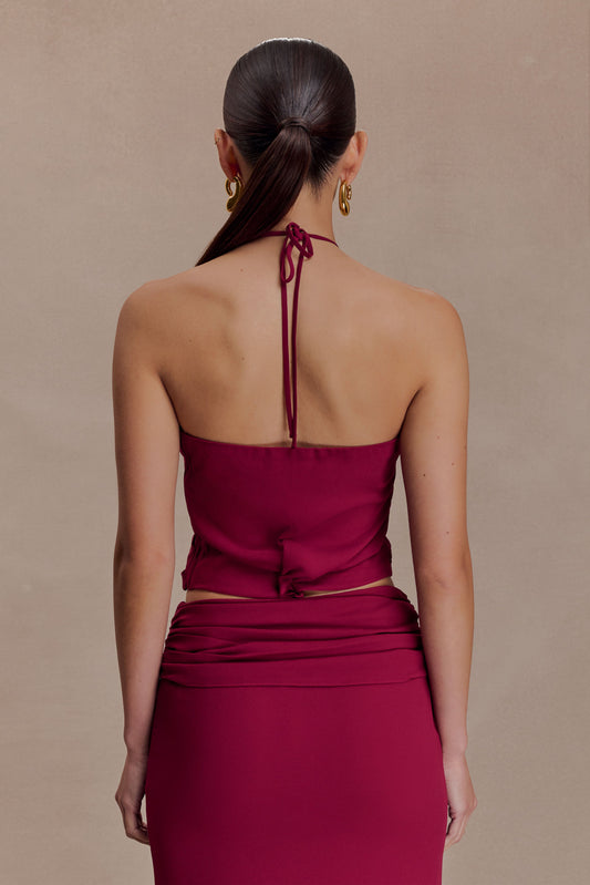 Celina Chiffon Halter Top With Hardware - Cherry Red