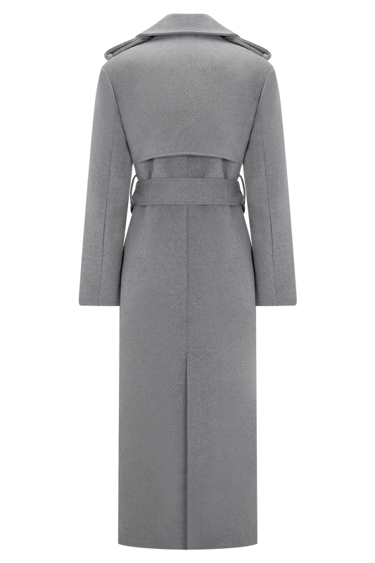 Long Trench Wool Coat - Grey Marle