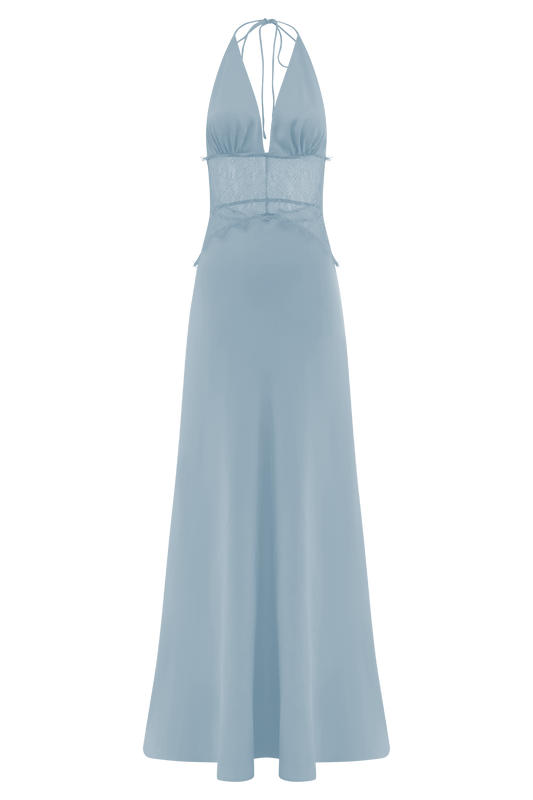 Dinah Lace And Satin Maxi Dress - Cornflower Blue
