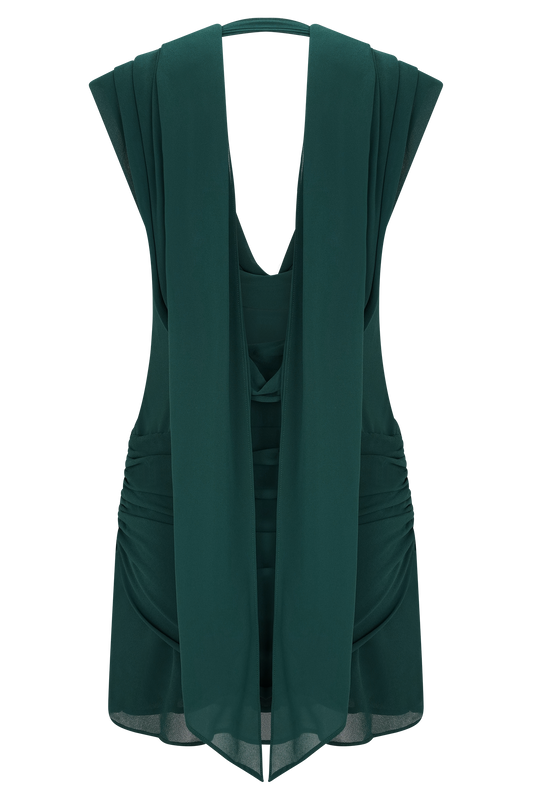 Giulia Chiffon Draped Mini Dress - Dark Emerald