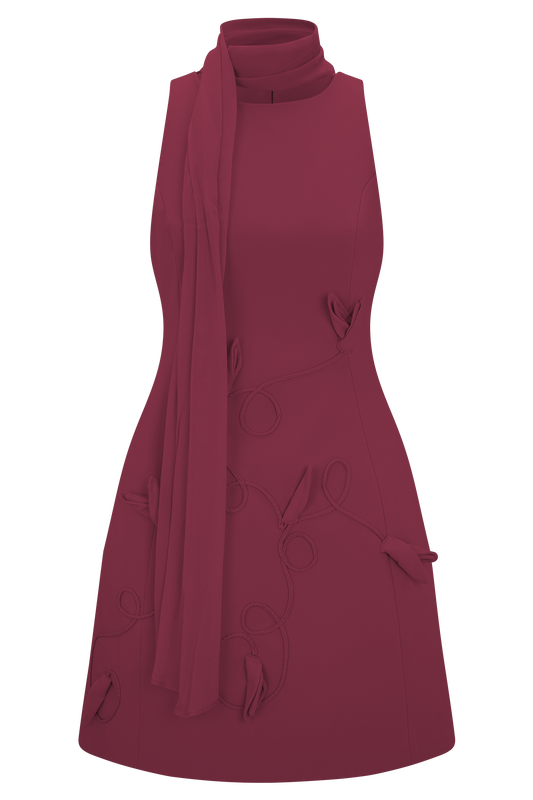 Nimah Chiffon Ruffle Mini Dress - Wine