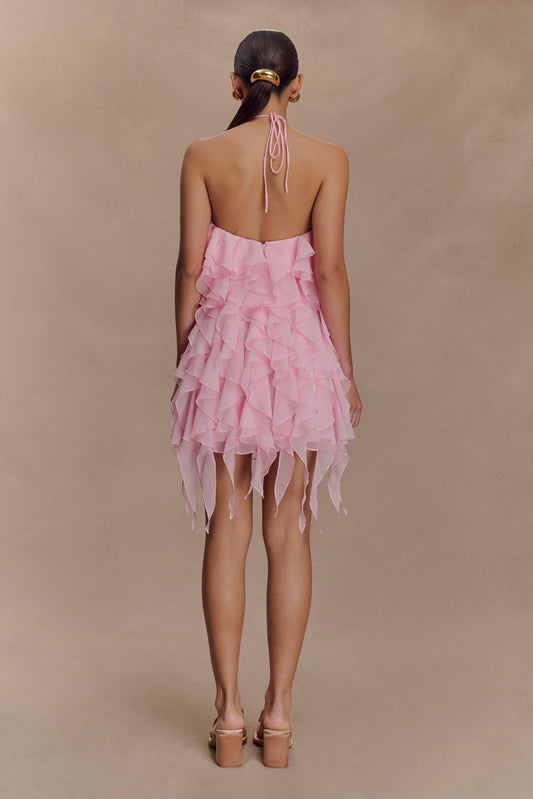 Marigold Ruffle Halter Mini Dress - Powder Pink