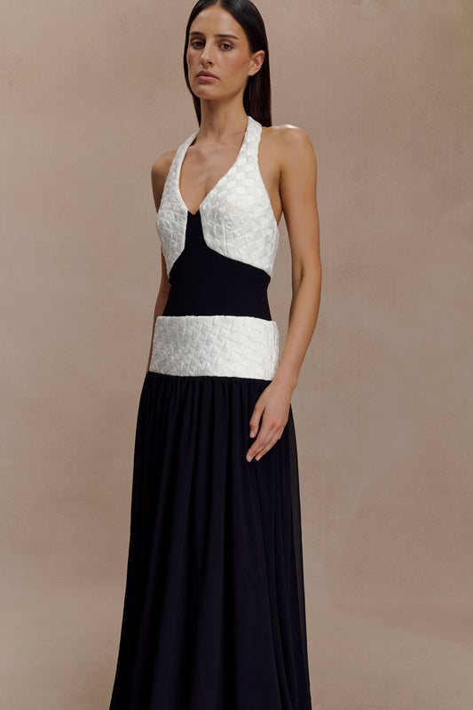 Melodie Halter Knit Maxi Dress - Black/WhiteHalter Knit Maxi Dress - Black/White Regular price £89Unit price per