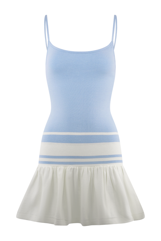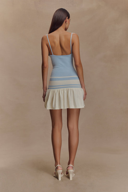 Regular price£75-49% Off Sale price £38Unit price / per20% OFF AT CARTEllison Contrast Knit Mini Dress - Blue/White