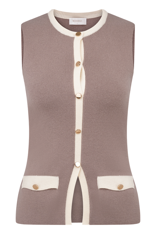 Sale price £50 Regular priceUnit price / per£6523% offJulianne Contrast Knit Top - Pebble/Ivory