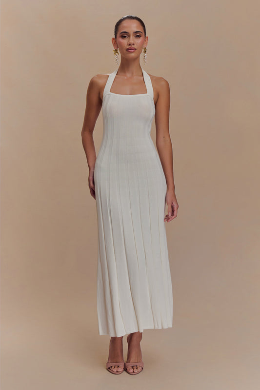 Stacie Pleated Halter Maxi Dress - Ivory