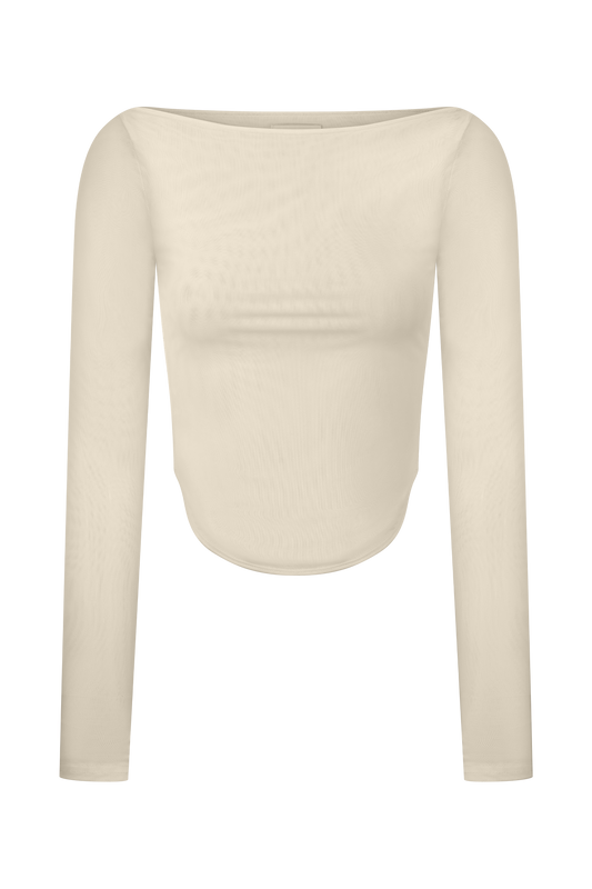 Colette Boat Neck Mesh Top - Ivory