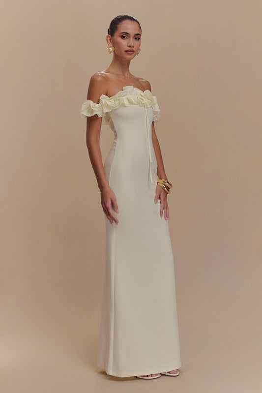 Nova Ruffle Off Shoulder Maxi Dress - Ivory