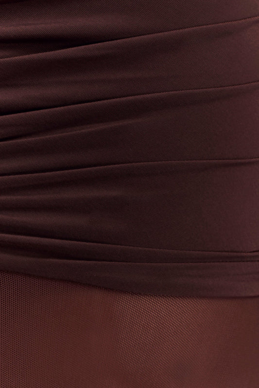 £85-60% Off Sale price £34Unit price / per20% OFF AT CARTDelaney Slinky And Mesh Maxi Dress - Chocolate