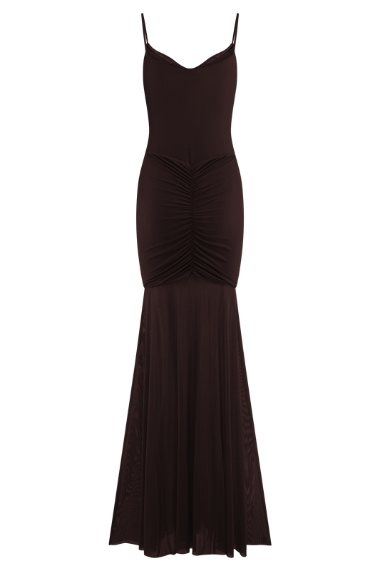 Slinky And Mesh Maxi Dress - Chocolate