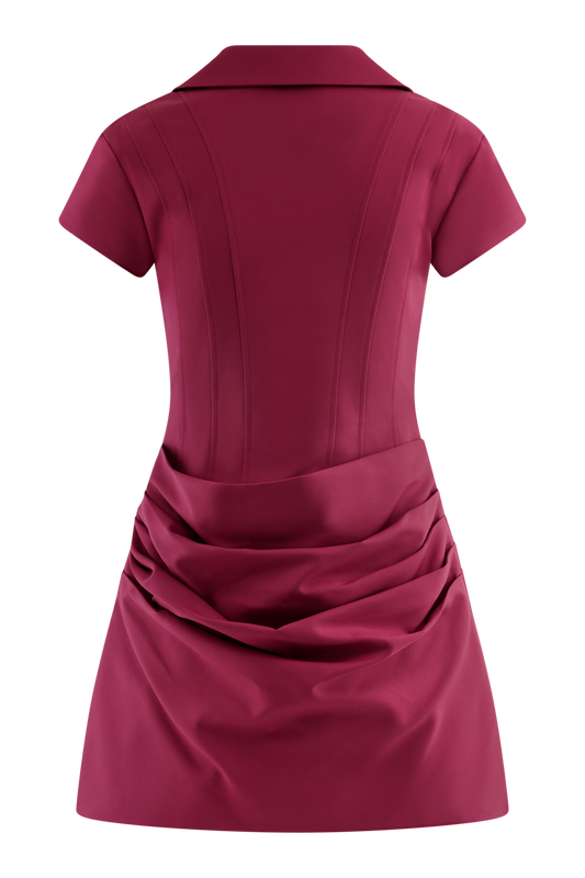 Tarryn Collared Cotton Mini Dress - Dragonfruit