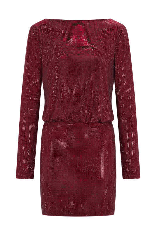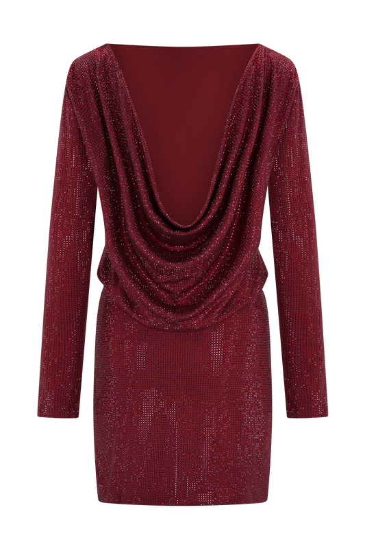 Diamante Cowl Mini Dress - Wine
