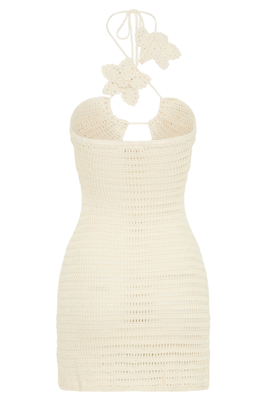 Liyah Floral Hand Crochet Mini Dress - Ivory