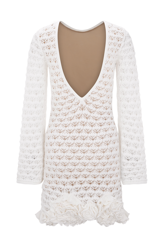 Hand Crochet Knit Mini Dress - White